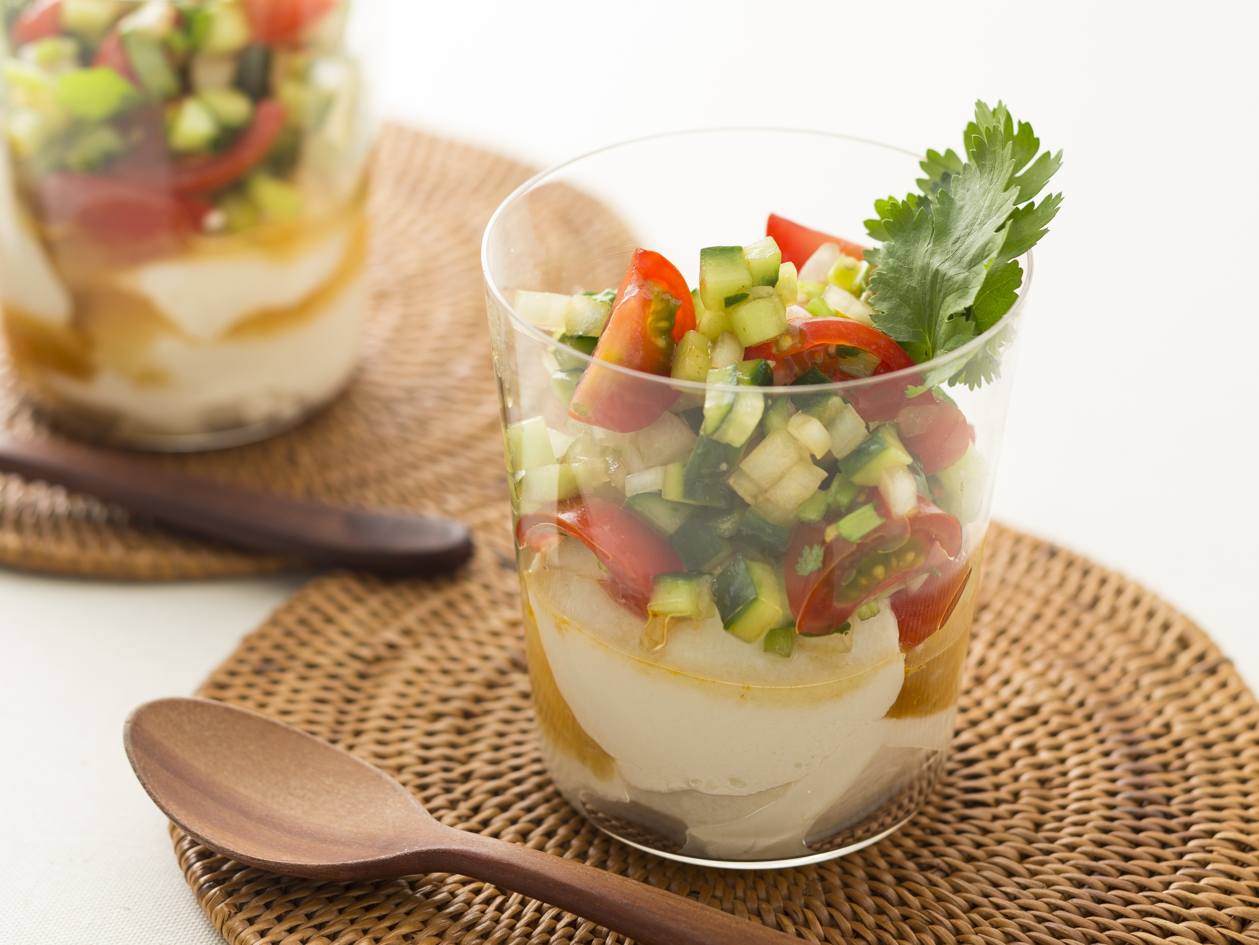 和風サルサソースでお豆腐カップサラダのレシピ 作り方 おうちレシピ ミツカングループ
